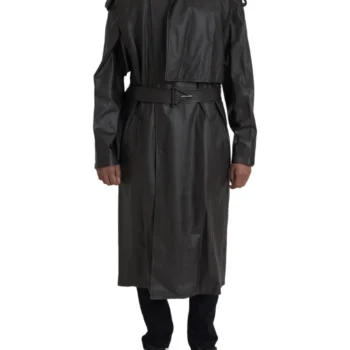 Bottega Veneta Black Leather Trench Coat Jacket